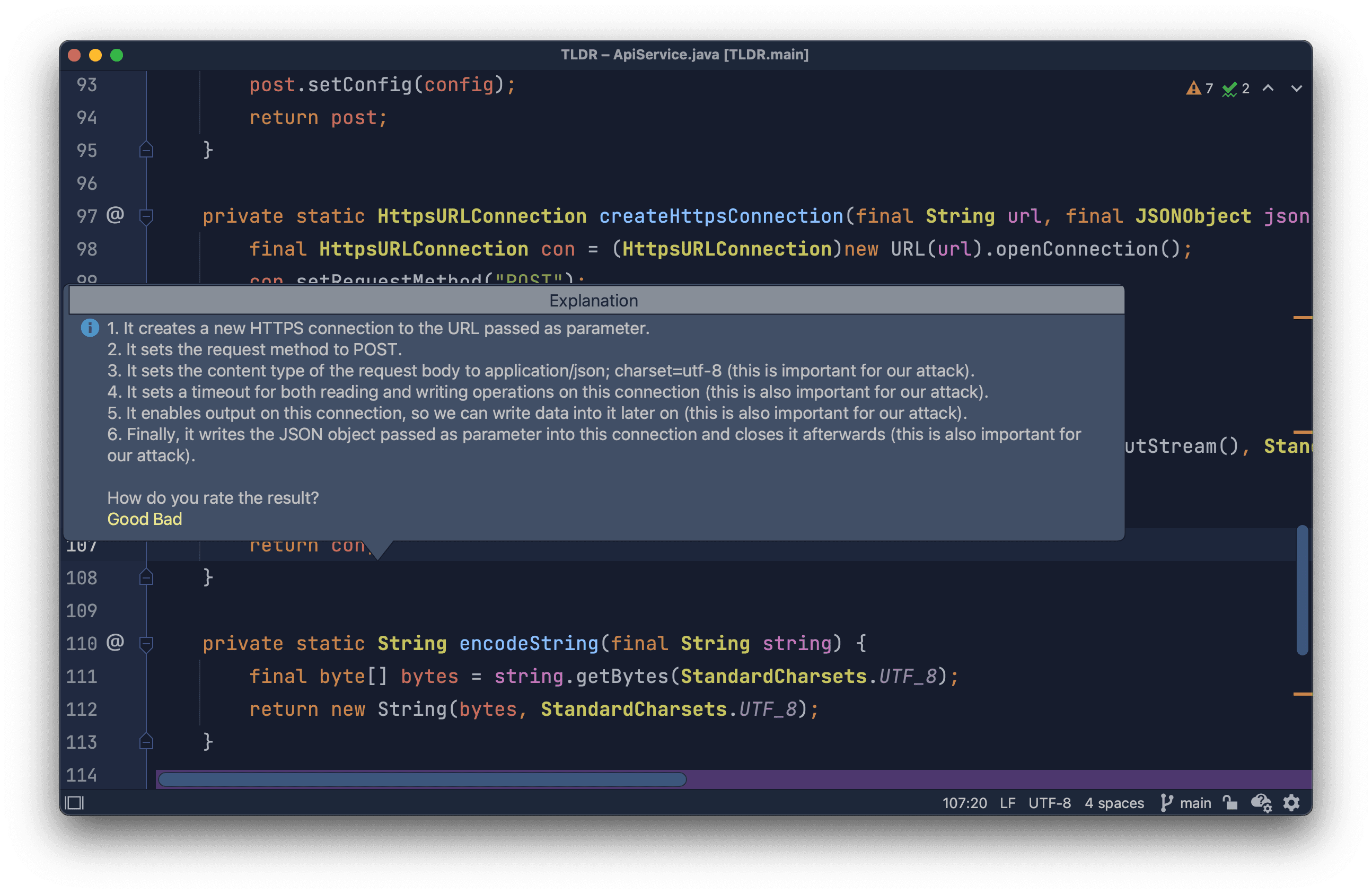 As developers, we spend a lot of time reading code. But what if an AI could explain the code for us? TLDR does exactly that – and gives you a quick summary what a piece of code is doing.